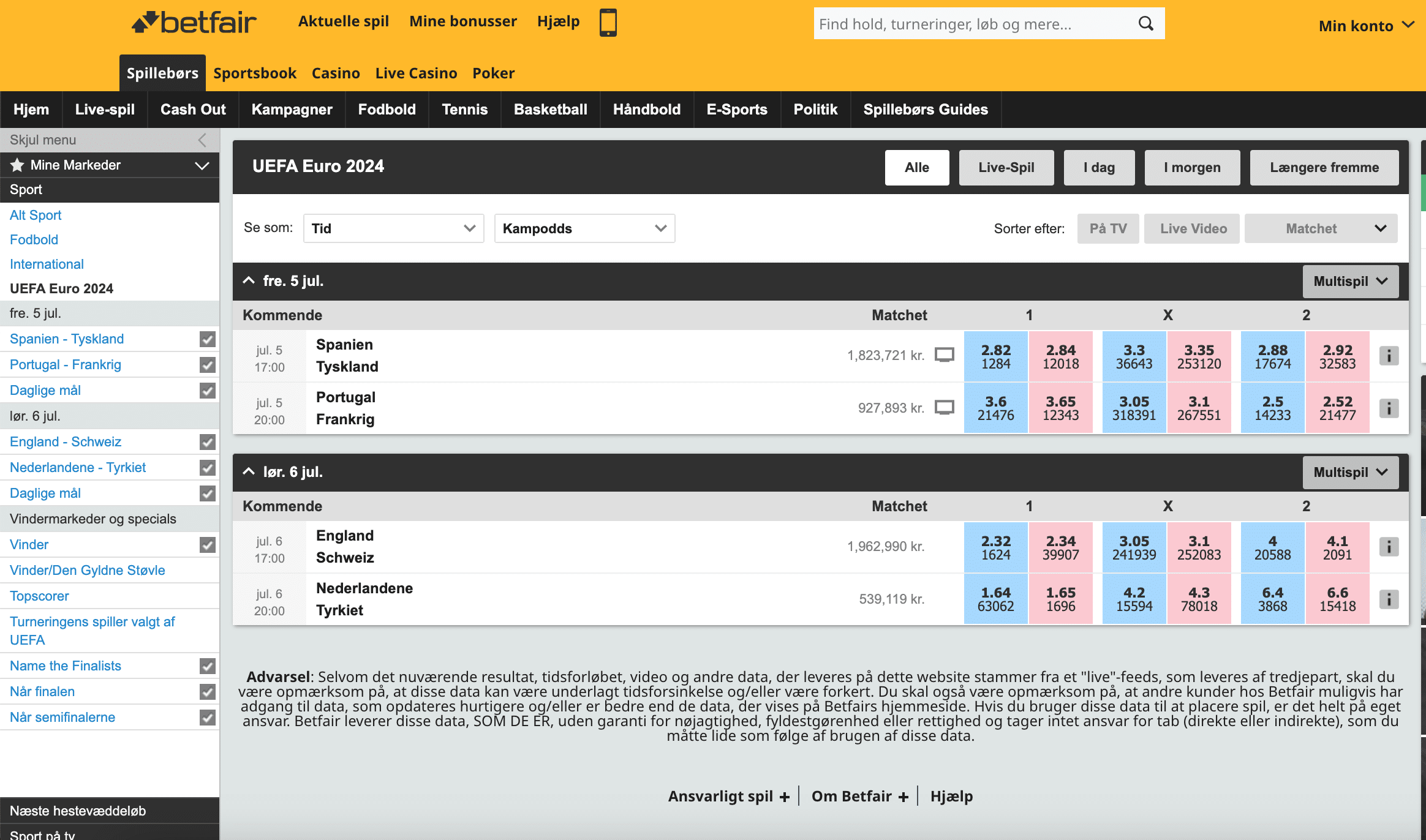 Få næsten altid højest odds hos Betfair Spillebørs:
