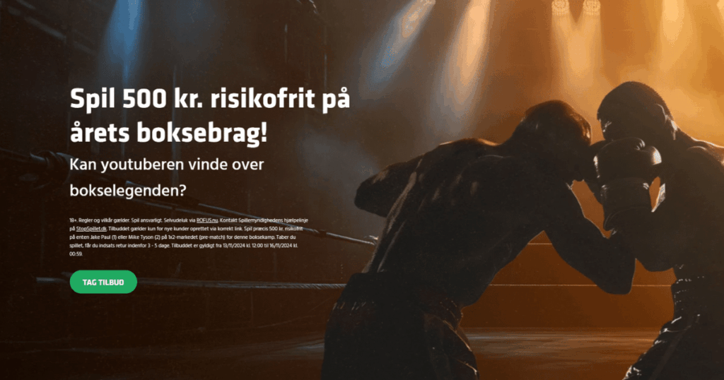Tilbud udløbet, og kan ikke længere benyttes. Hold øje med hjemmesiden, der vil løbende kommer flere eksklusive kampagner. Som ny kunde hos Expekt, kan man spille 500 kr. risikofrit på årets boksekamp, når Jake Paul og Mike Tyson mødes i ringen natten til lørdag! Man skal oprette sig og spille præcis 500 kr. på vinderen […]