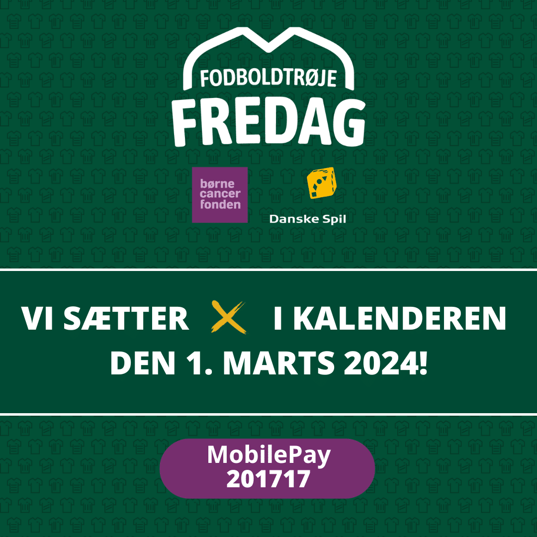Alle donationer går ubeskåret til Børnecancerfonden som bruger pengene på støtte, forskning og forebyggelse. Ved at sende en donation, gør du en kæmpe forskel for kræftramte børn og deres familier. Så lad os alle stå sammen på fredag den 1. marts og vise hvad fodbold fans kan gøre når vi når forener os. Glæder mig til at se en masse billeder af jer alle rundt på diverse sociale medier på fredag. #FodboldtrøjeFredag