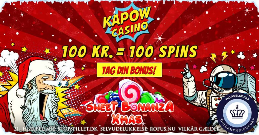 ⚡ Kapow Casino Velkomstbonus – 100 kr. = 100 Spins til Sweet Bonanza Xmas