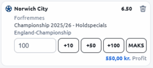 Jeg glæder mig til at se, hvordan de forvalter sæsonen 2025/26, og jeg spiller 1 unit til odds 6.5 på, at Norwich rykker op i Premier League til sæsonen 2026/27.