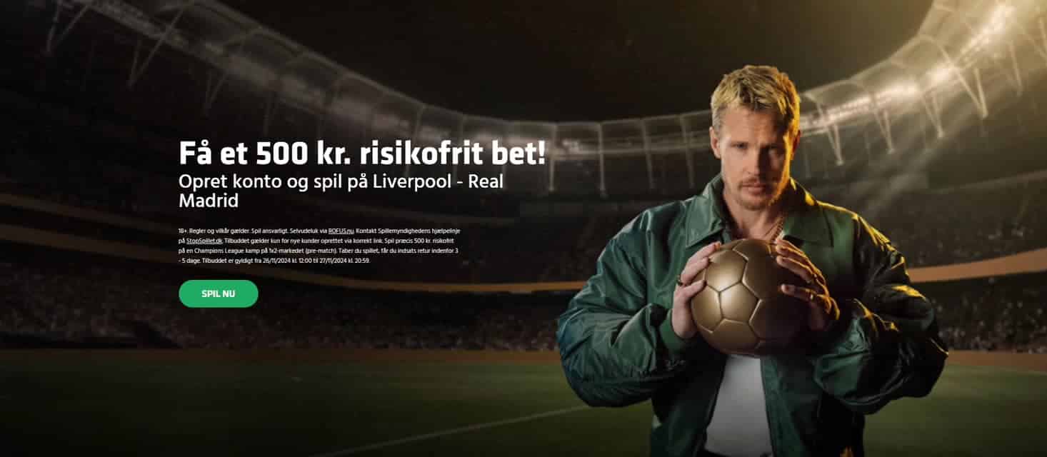 Det er ikke hver dag, at en bookmaker vælger at tilbyde et 100% risikofrit velkomsttilbud. Du får altså her muligheden for at spille 500 kr. på en Champions League kamp, efter dit eget valg. Vinder du, så putter du blot pengene direkte ind på din betting konto eller bankkonto.