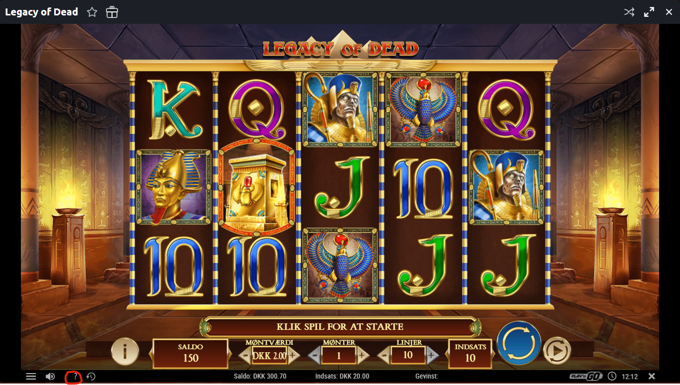 Det er fælles for alle Play´n GO maskiner, at du i bundlinjen blot klikker på spørgsmålstegnet også vil du komme ind på en side hvor du kan finde RTP, som oftest vil blive listet som tilbagebetalingsprocent som er 1:1 det samme. Langt de fleste casinoer i Danmark har Legacy of Dead med 94,5%, men hos Betano er de helt oppe på 96,58% hvilket er det højest mulige på netop denne slot.