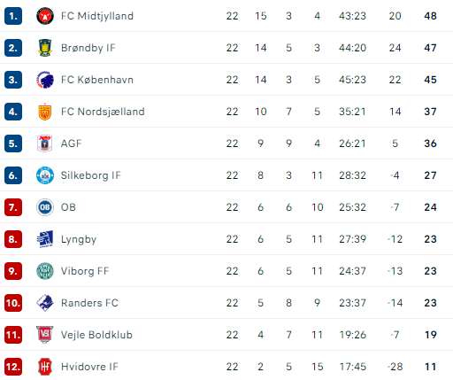 Her kan man se, hvor stor forskel der reelt er på top 3, og så resten af ligaen. Det er ret vildt at tænke på, at FCM er hele 37 point foran Hvidovre efter 22 kampe. Det viser bare, hvor stærke de 3 hold i toppen er i dansk fodbold. Det gør også, at vi går et super spændende forår i møde, hvor intet er afgjort i hverken top eller bund.