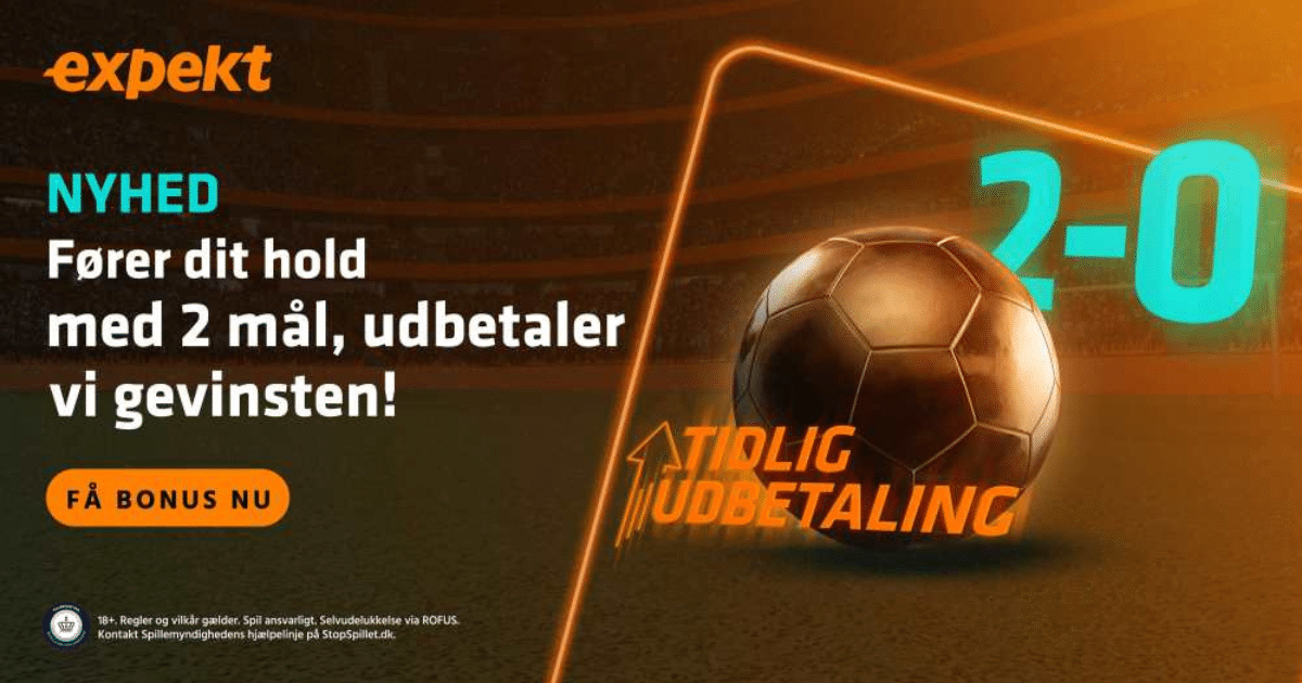 Min. +18 år • Hjælpelinje: StopSpillet.dk • Selvudelukkelse via ROFUS.nu • Regler og vilkår gælder • Expekt T&C • Du skal lave en indbetaling på op til 1.000 kr. inden for 30 dage. Du får ekstrachance-væddemål, der matcher din indbetaling 100%, udbetalt som 5 separate væddemål, der hver svarer til 20% af din indbetaling, op til 200 kr. pr. væddemål. Efter indbetaling har du 30 dage til at bruge dine ekstrachance væddemål. For at aktivere ekstrachance-tilbuddet, skal du vælge tilbuddet fra ‘Belønnings’-sektionen på spilkuponen, INDEN du placerer dit kvalificerende væddemål. Ekstrachance på op til 200 kr. skal placeres på et hvilket som helst marked med max. odds 8.00. Et mached freebet vil kun blive tildelt, hvis det kvalificerende bet er afgjort som tabt. Freebet er gyldigt i 30 dage og har intet min. odds og kan anvendes på et hvilket som helst marked. Systemspil, profitboost og cashed out eller annullerede væddemål kan ikke bruges i forbindelse med dette tilbud.